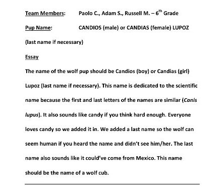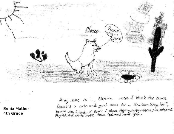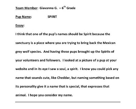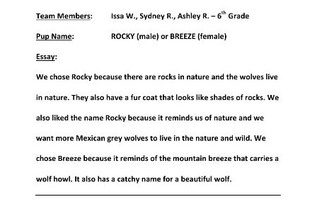 “I think Sandy is a good name for a Mexican wolf pup because the color of the fur looks like sand.”