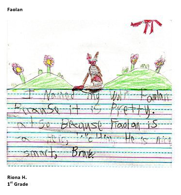 “I named my wolf Faolan because it is pretty. Also, because Faolan is a hero, like him. He is nice, smart, brave.”